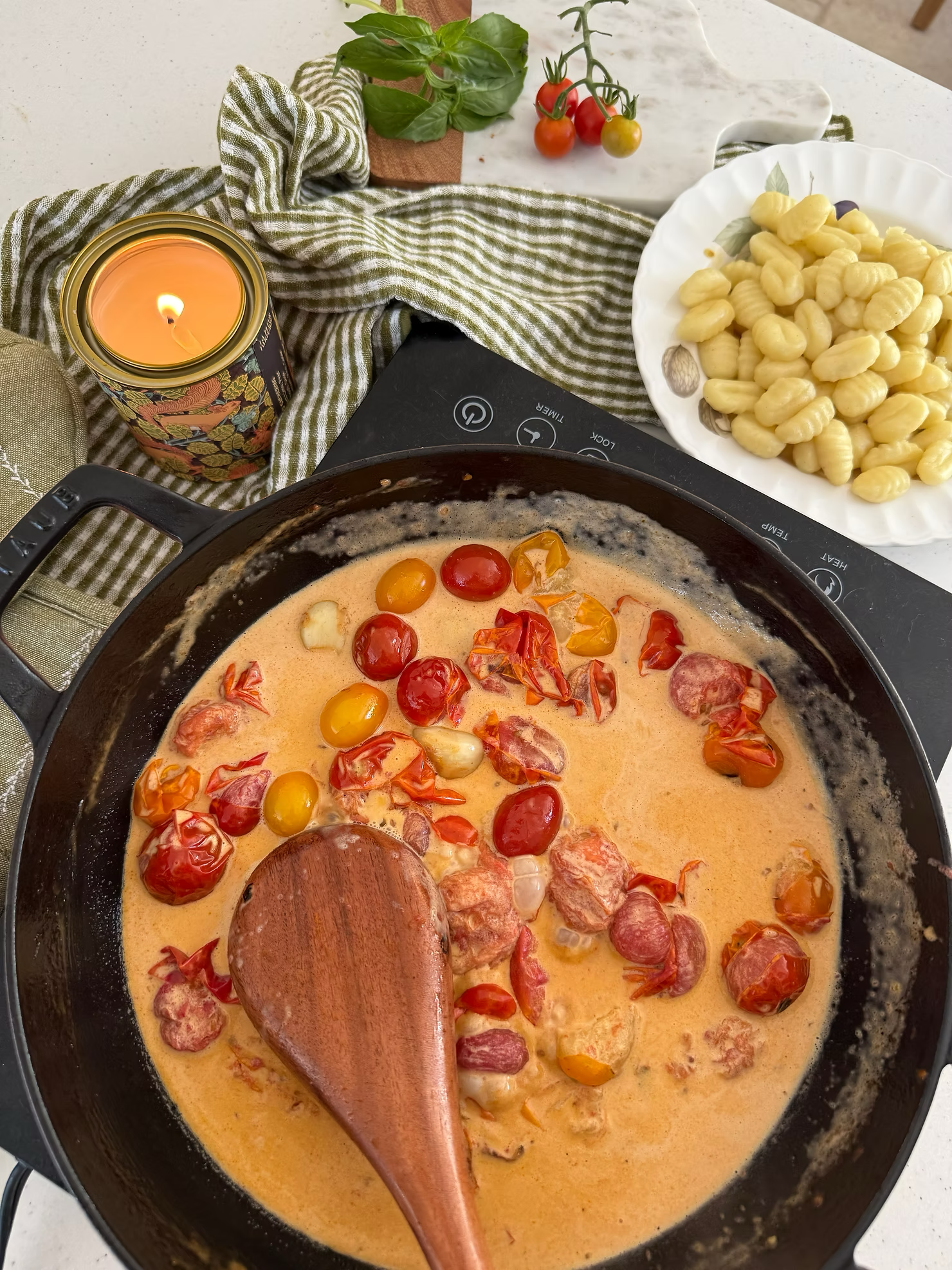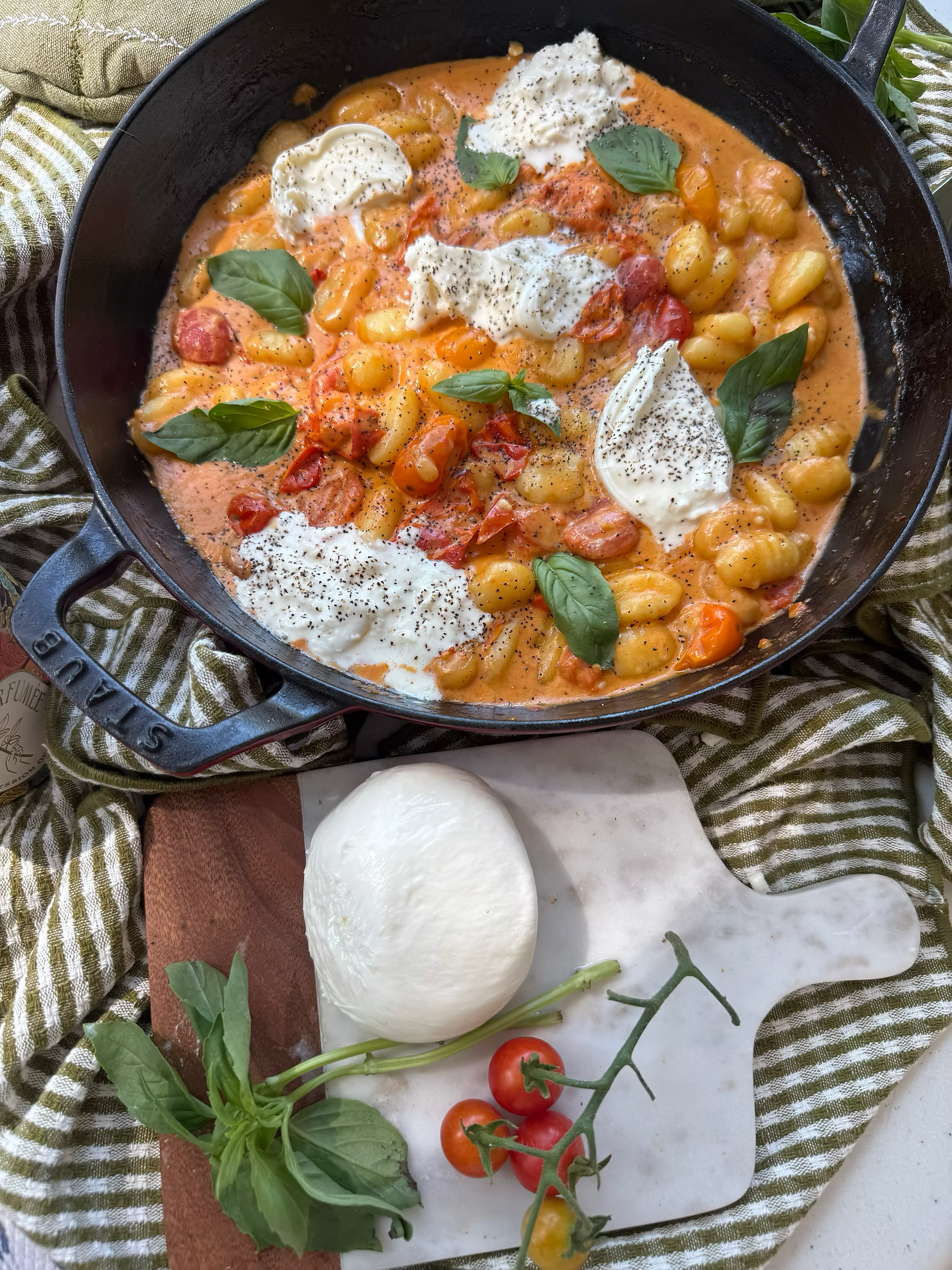 This 30 minute Tomato Burrata Gnocchi is pure comfort in a bowl. The gnocchi are soft and pillowy, coated in a sauce made from sweet, in-season tomatoes and fresh basil. Then the burrata comes in—once you tear it open, the creamy center melts right into the sauce, making everything rich and velvety. Every bite is fresh, cozy, and a little indulgent… the kind of dinner that feels special but takes hardly any effort to pull together.