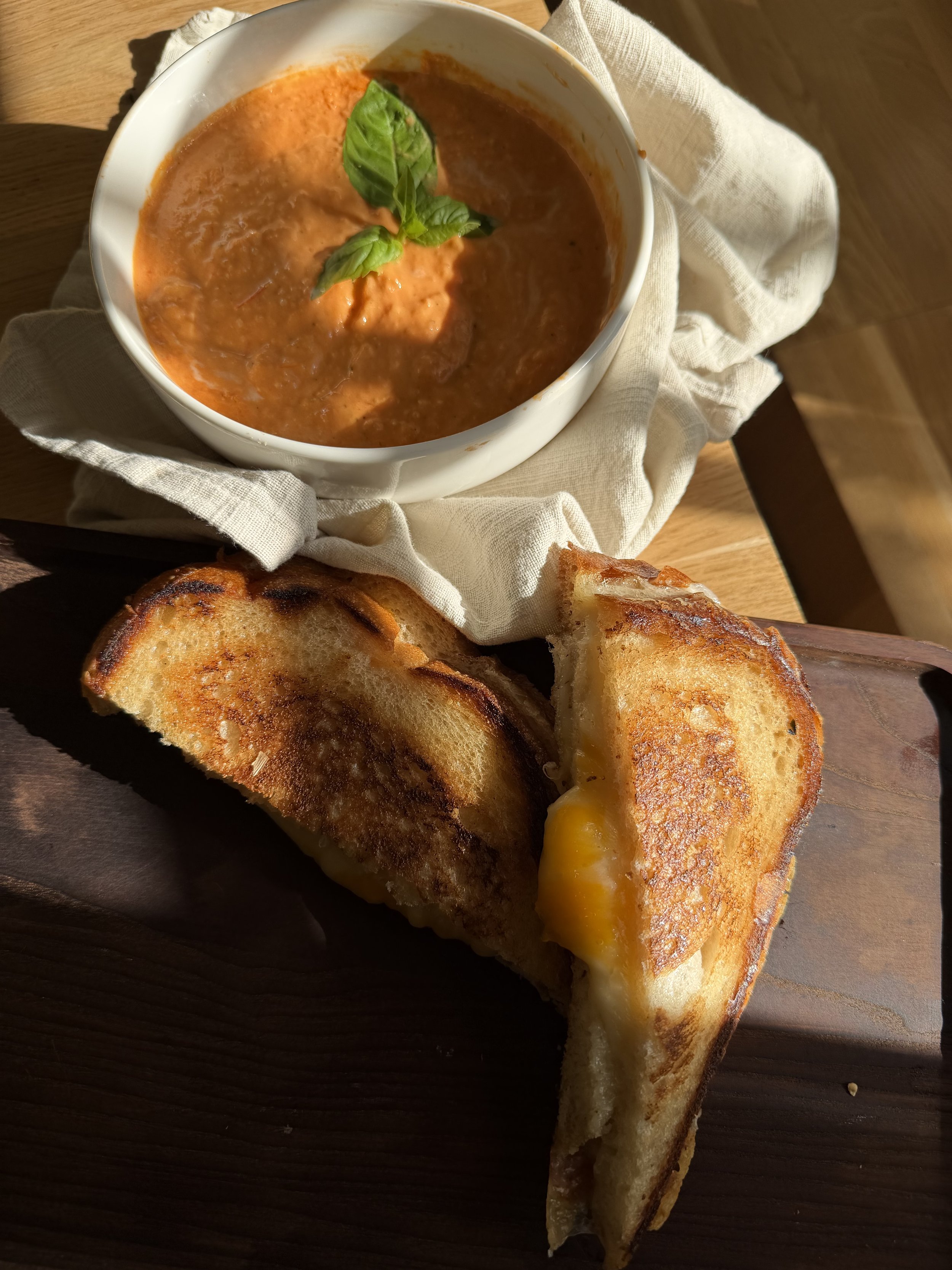 Creamy Tomato Bisque & Homemade Grilled Cheese