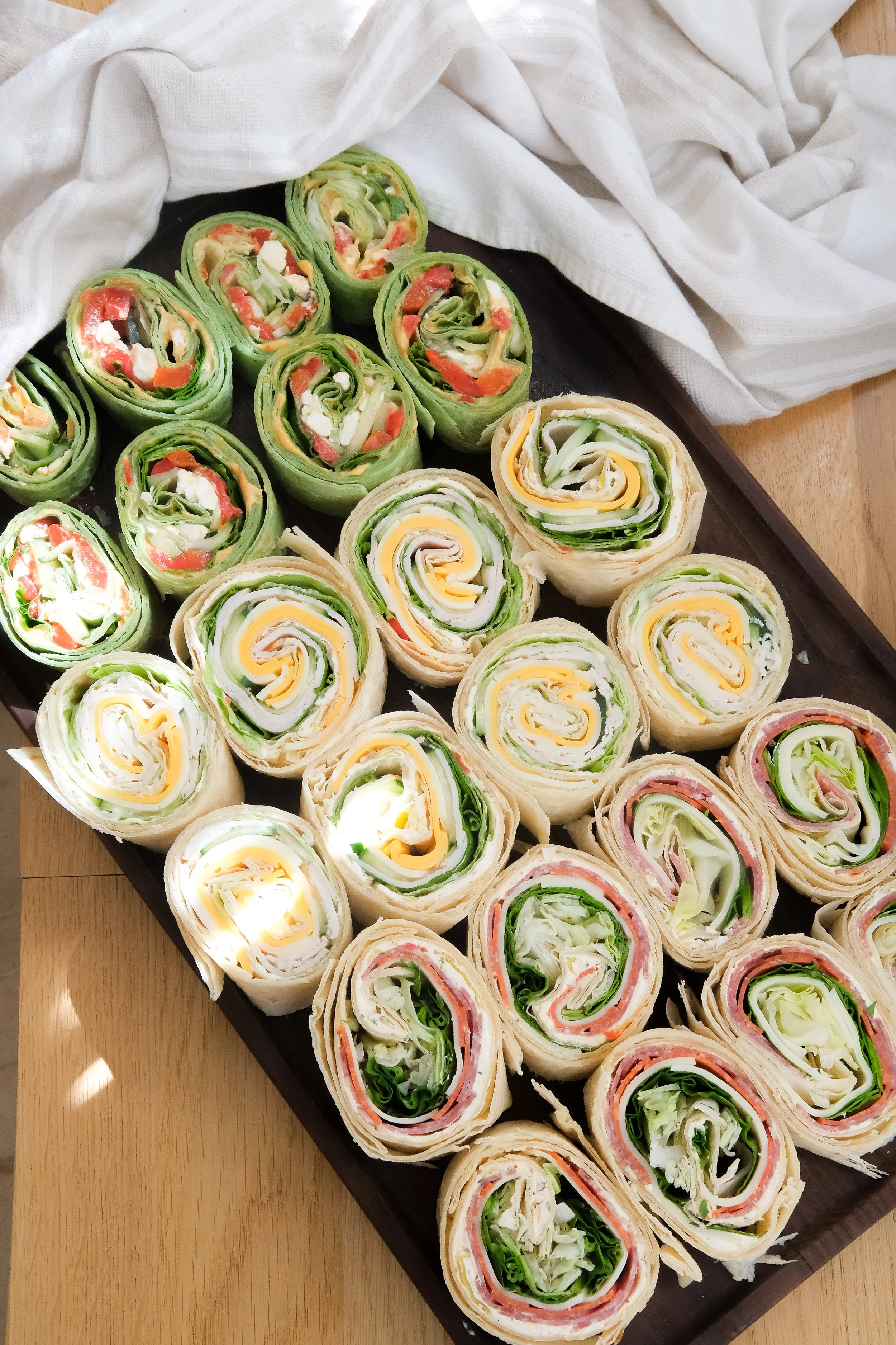 - Slice each wrap into about 4 pinwheels and arrange on a platter.