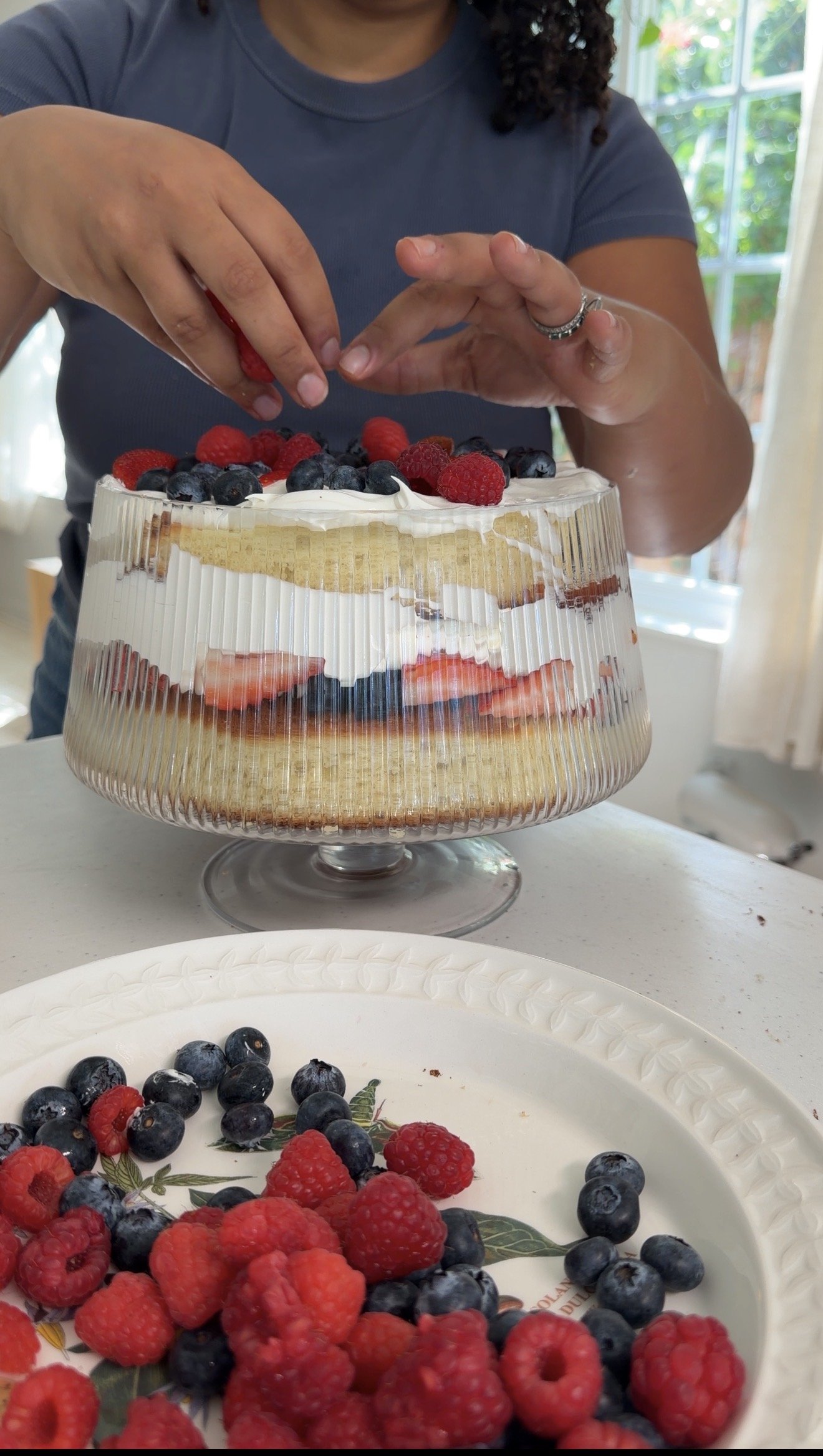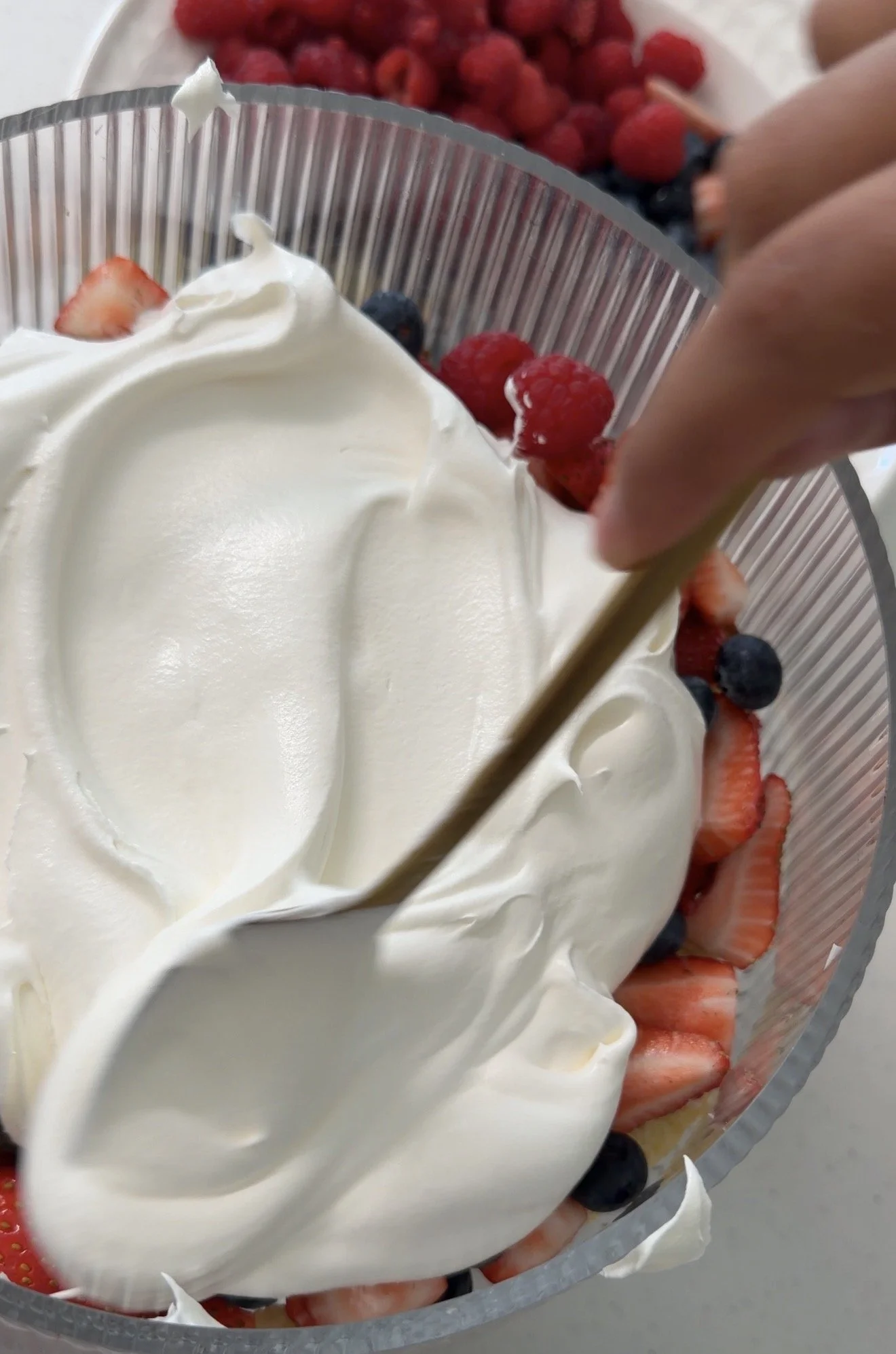 - Add a layer of mixed berries (strawberries, raspberries, and blueberries).